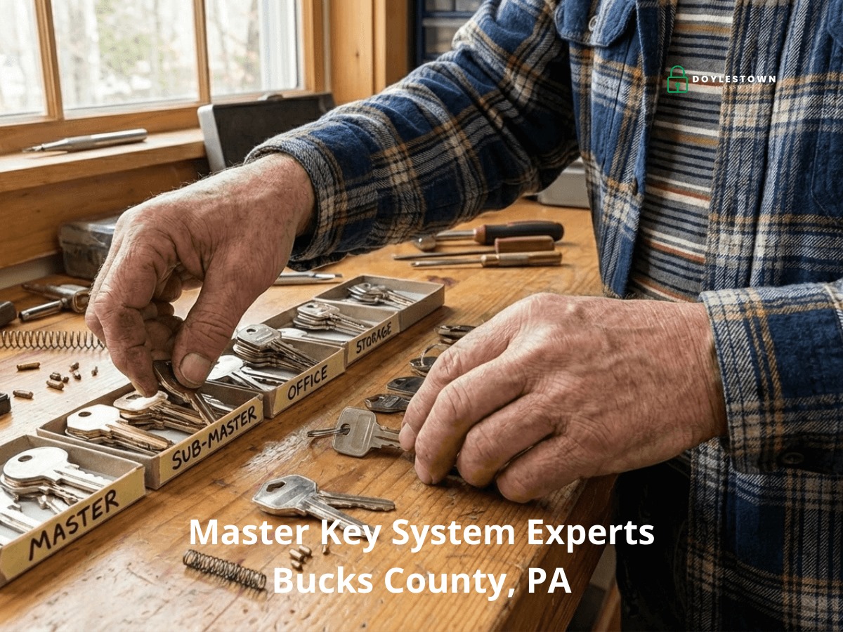 At Doylestown Locksmith, we design and install master key systems for businesses, office buildings, retail stores, medical facilities, and property management companies throughout Bucks County and surrounding areas.